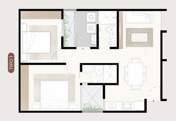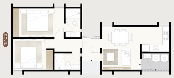 - 2 recámaras